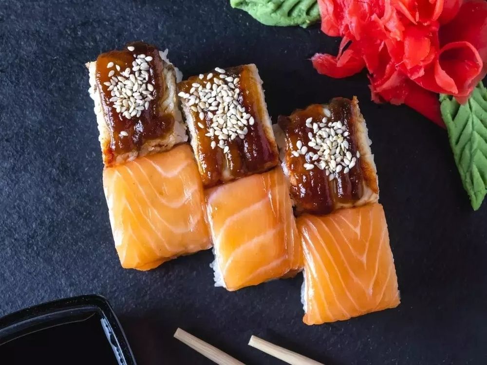 Лосось свежий,угорь копченый,сыр сливочный,огурец