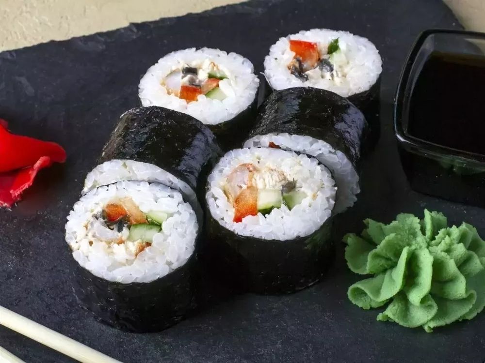 Креветки, угорь, перец болгарский, огурец свежий, соус спайс, кляр, сухари